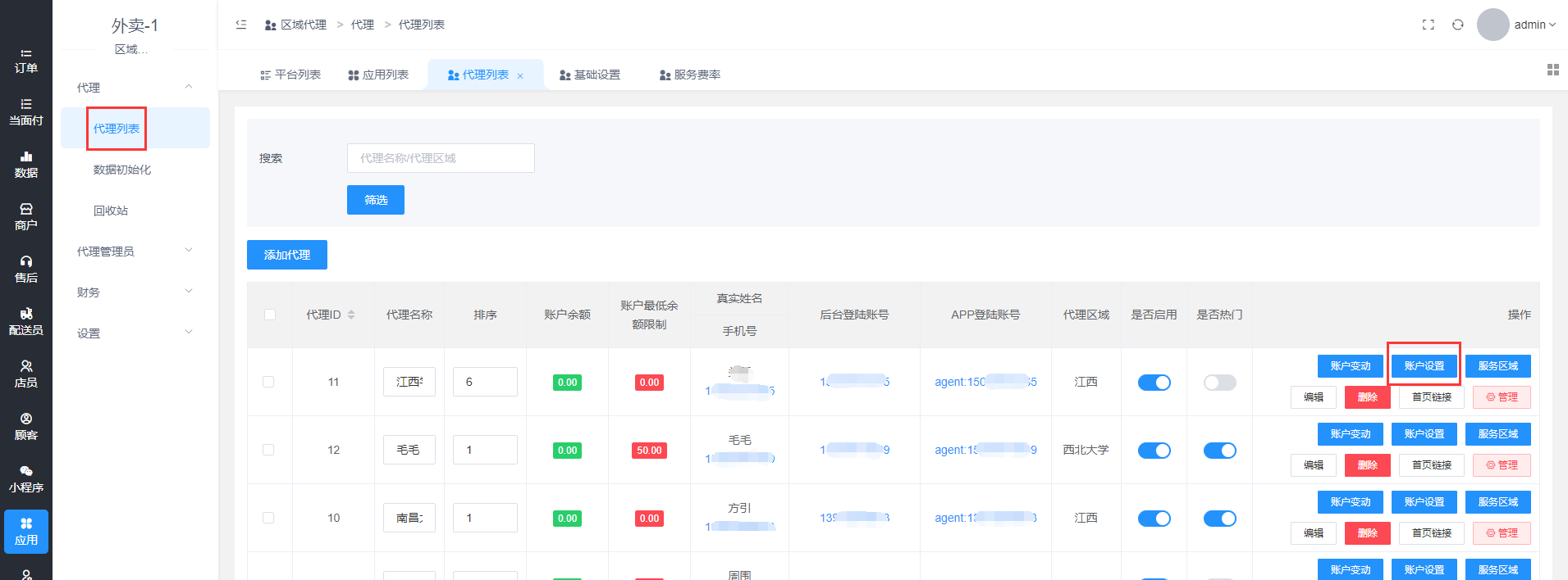 代理-代理列表-账户设置