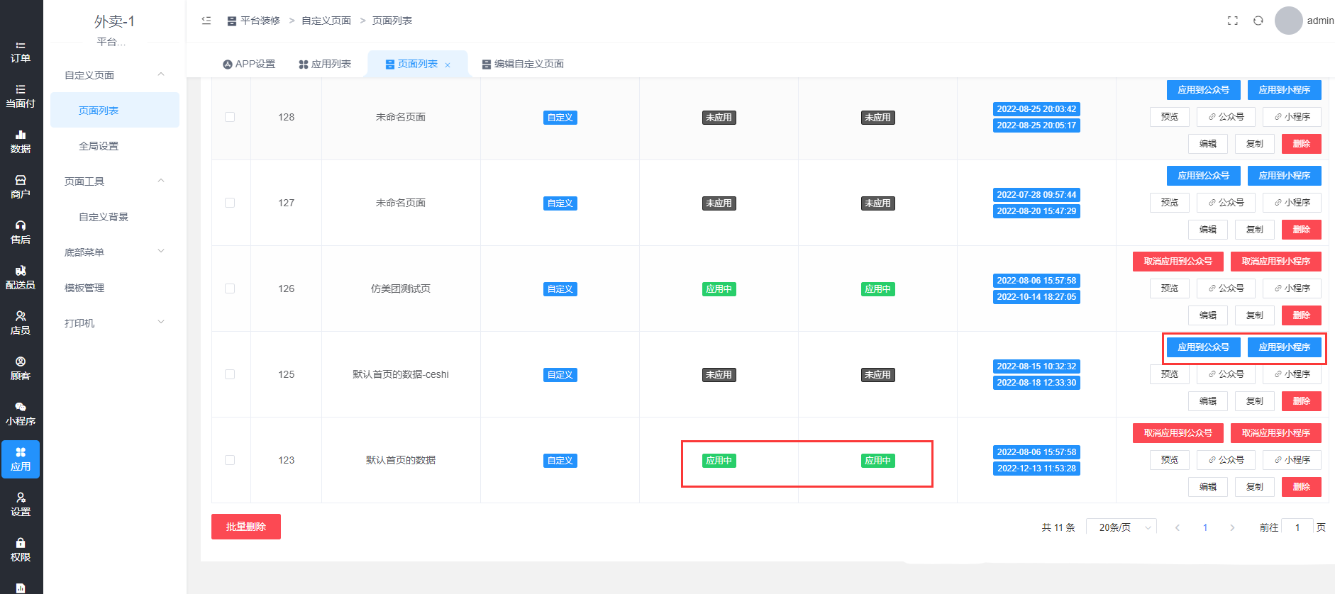 点击应用到公众号 小程序,则公众号小程序平台首页会显示这个自定义页面内容.