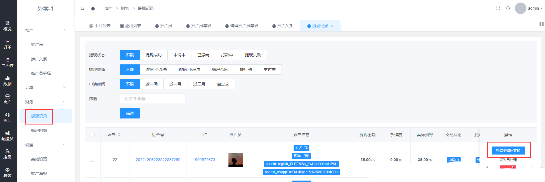 应用-推广-财务-提现记录,审核打款