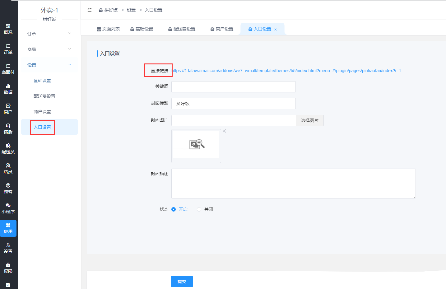 - 平台入口/商家管理入口/商家入驻入口/配送员入口