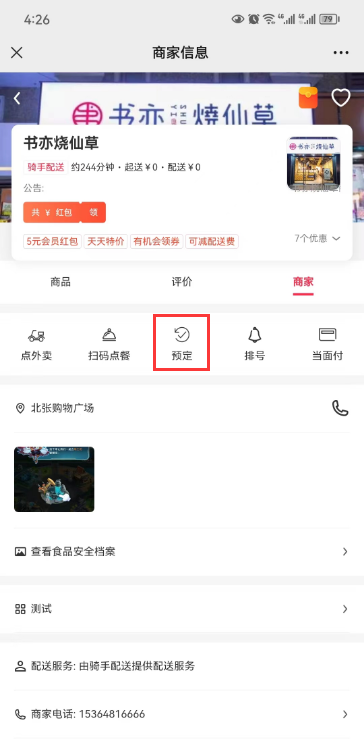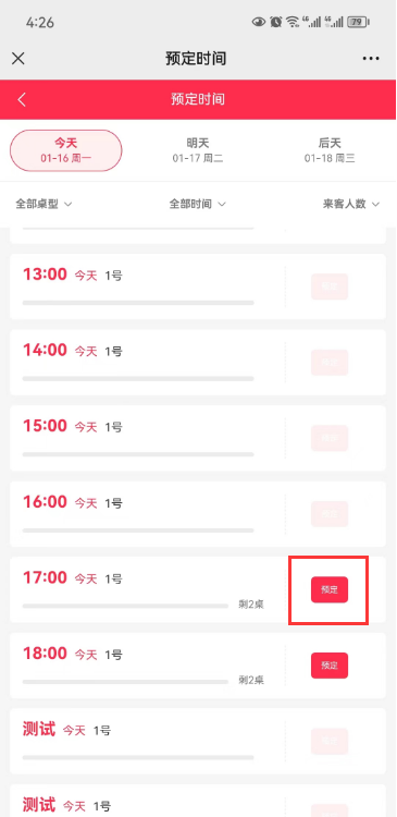 # **2.店内预定(新版后台还未支持店内)**