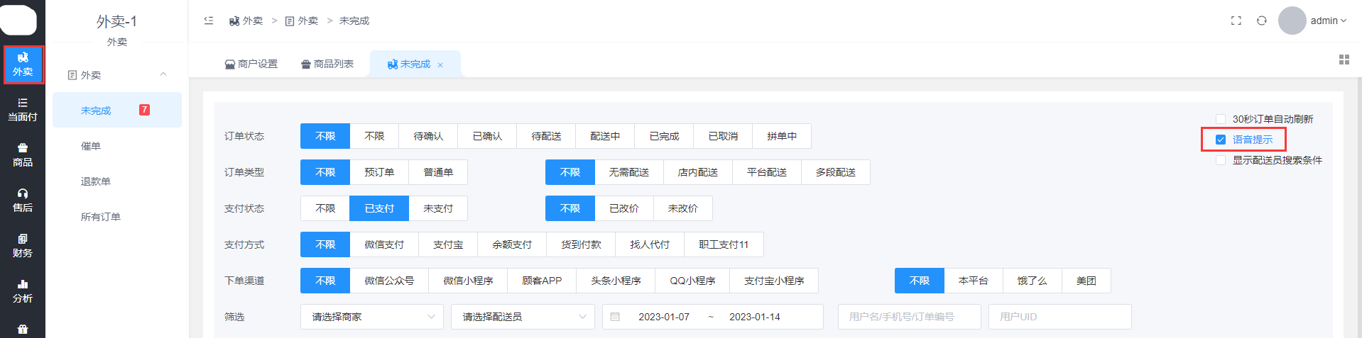 2.商家未接单 (如果商家设置了自动接单,语音不会提示)
