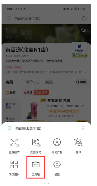 **2.打开Alook浏览器,访问**[美团H5链接](https://h5.waimai.meituan.com/waimai/mindex/home)**用手机号验证码登录进入一个门店。**