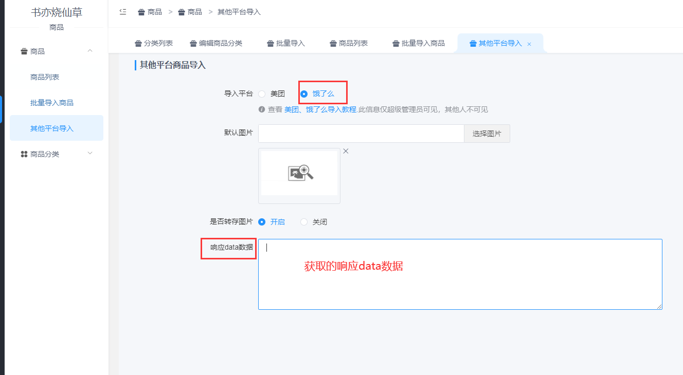 进入后台,复制到饿了么响应data数据里,点击开始导入 即可。
