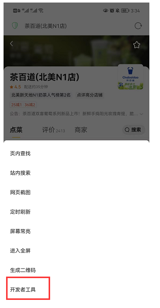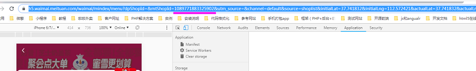 在浏览器中访问[美团H5链接](https://h5.waimai.meituan.com/waimai/mindex/home)点击进入一个商户,浏览器里获取门店ID,如下图