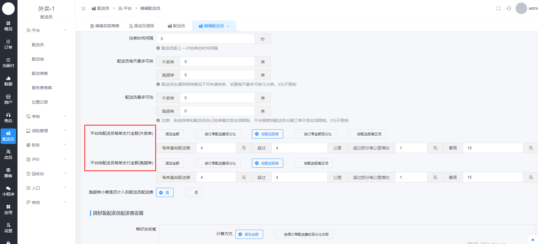 设置-配送员-提成及提现,批量给配送员设置配送费提成