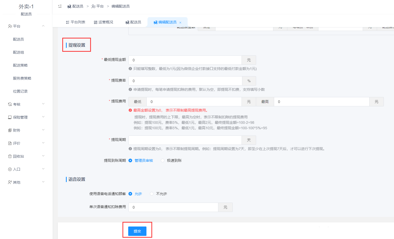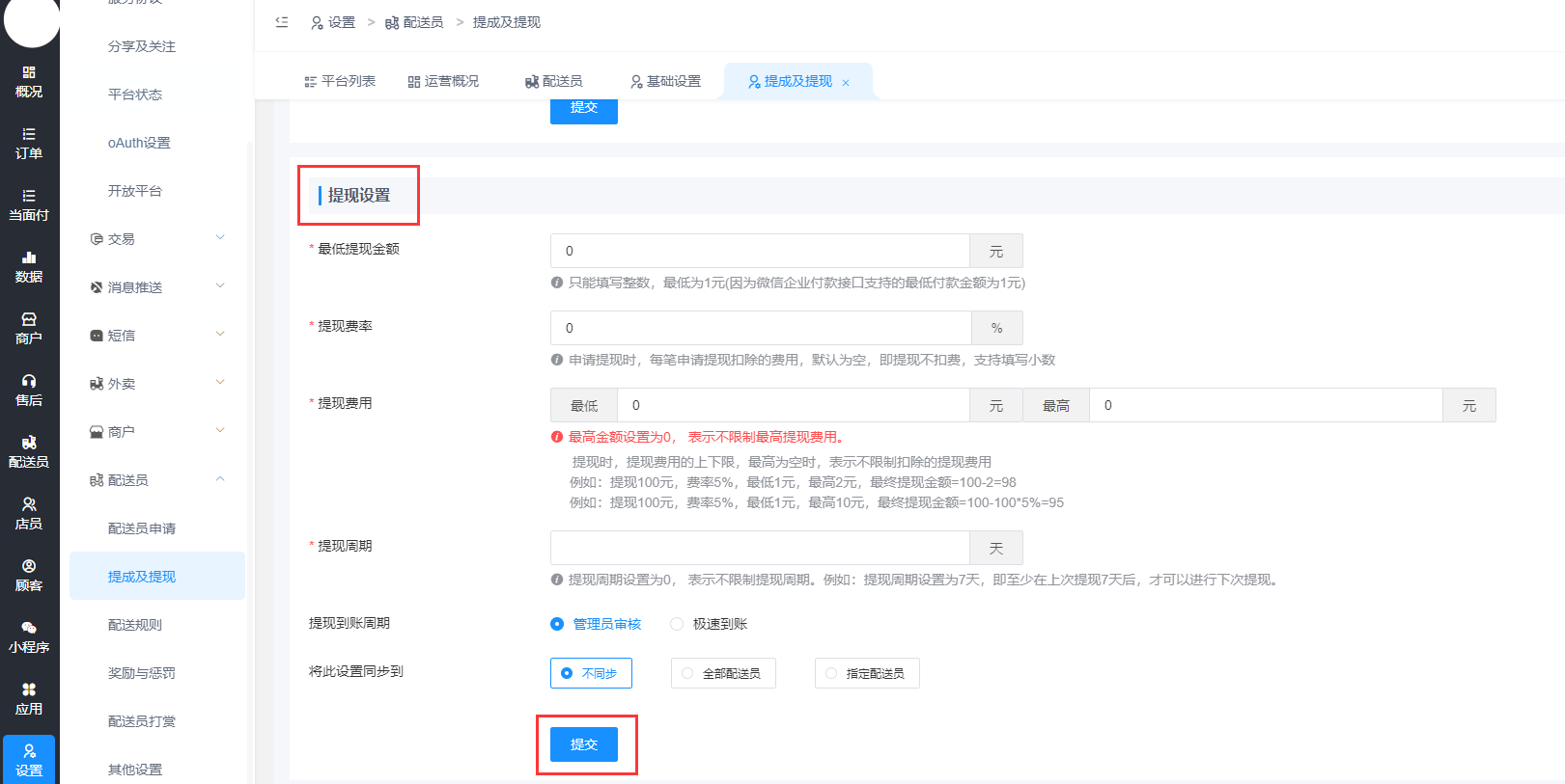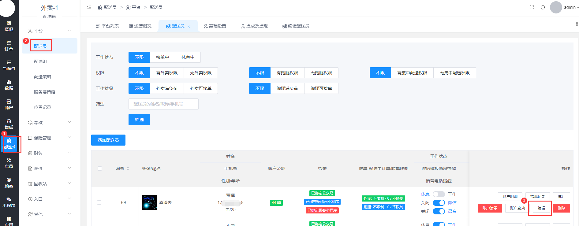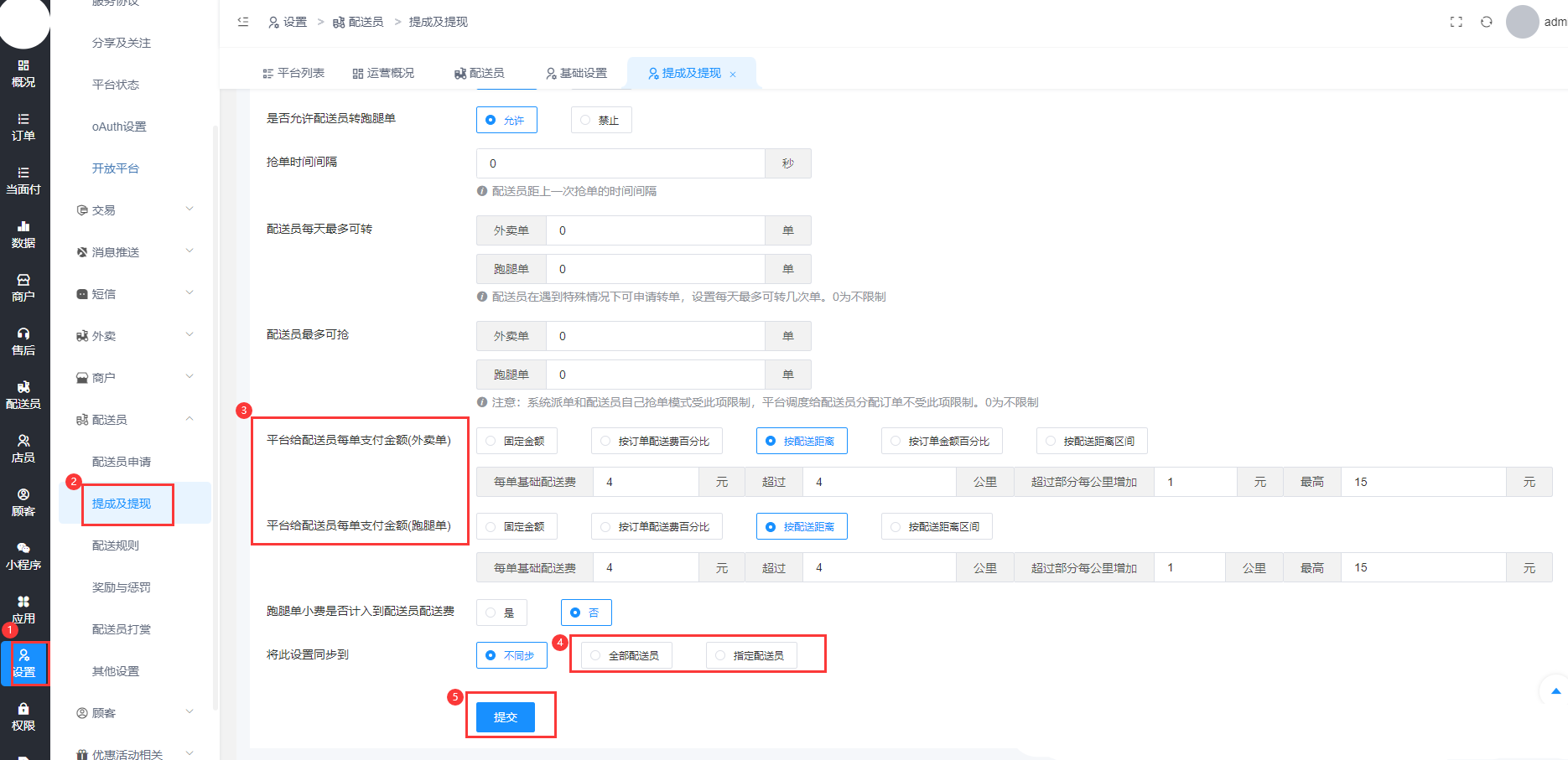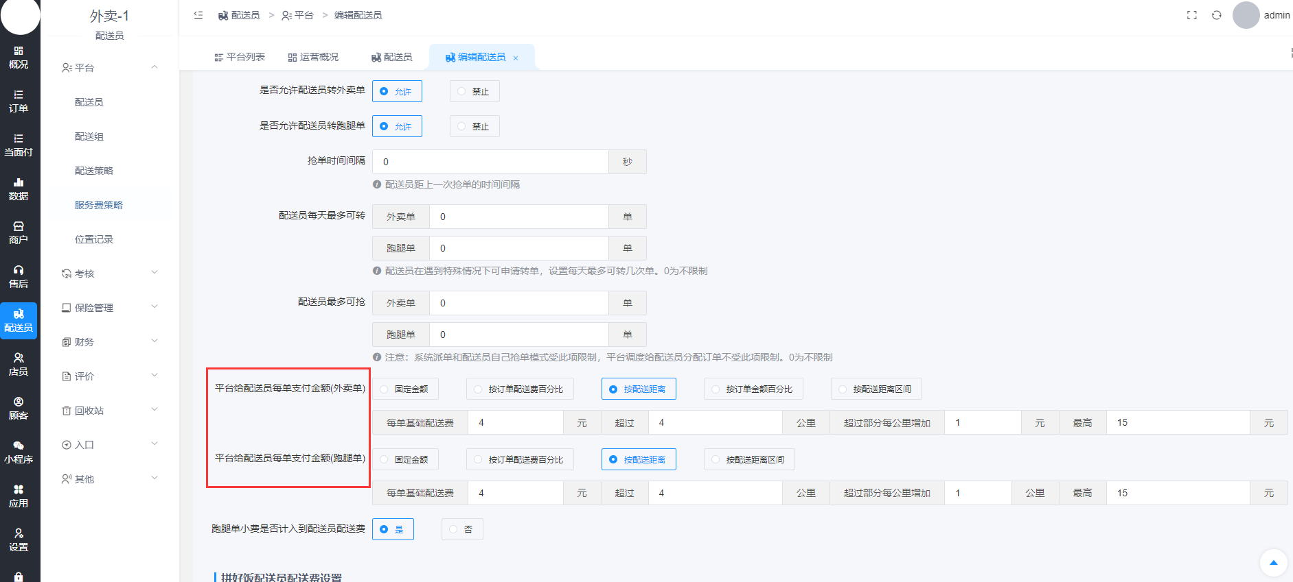 **有两种方式设置: 1.批量设置,2.单独给配送员设置**