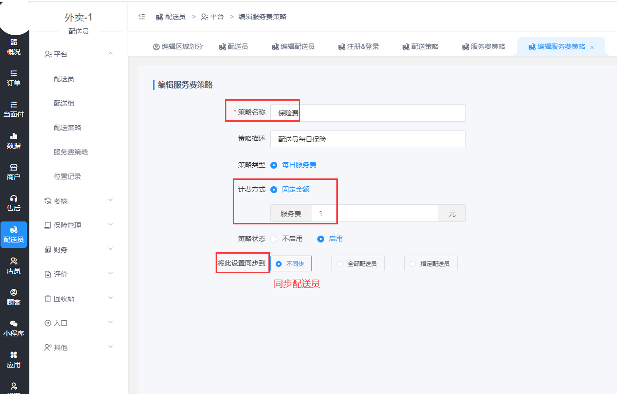 每日可以扣除配送员费用,每天在配送员配送完成第一单的时候扣除