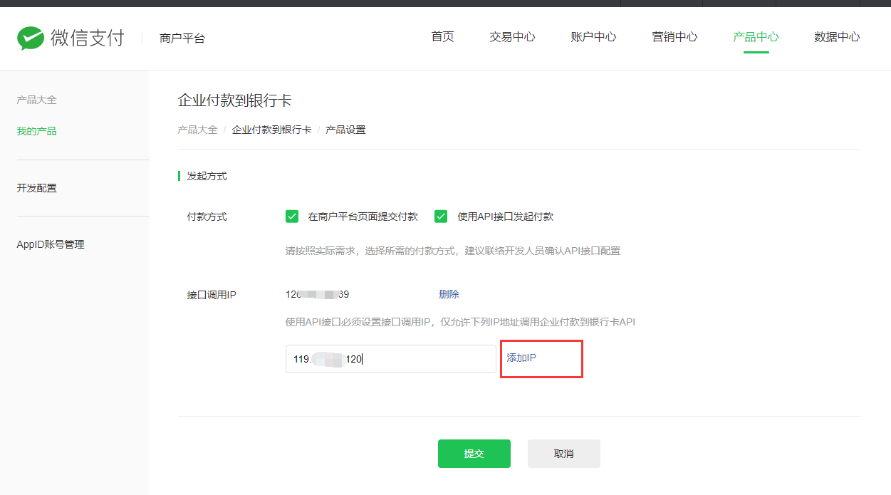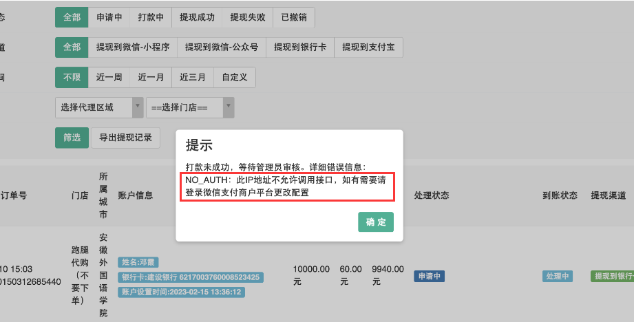- 打款到银行卡提示“此IP地址不允许调用接口”的解决方法