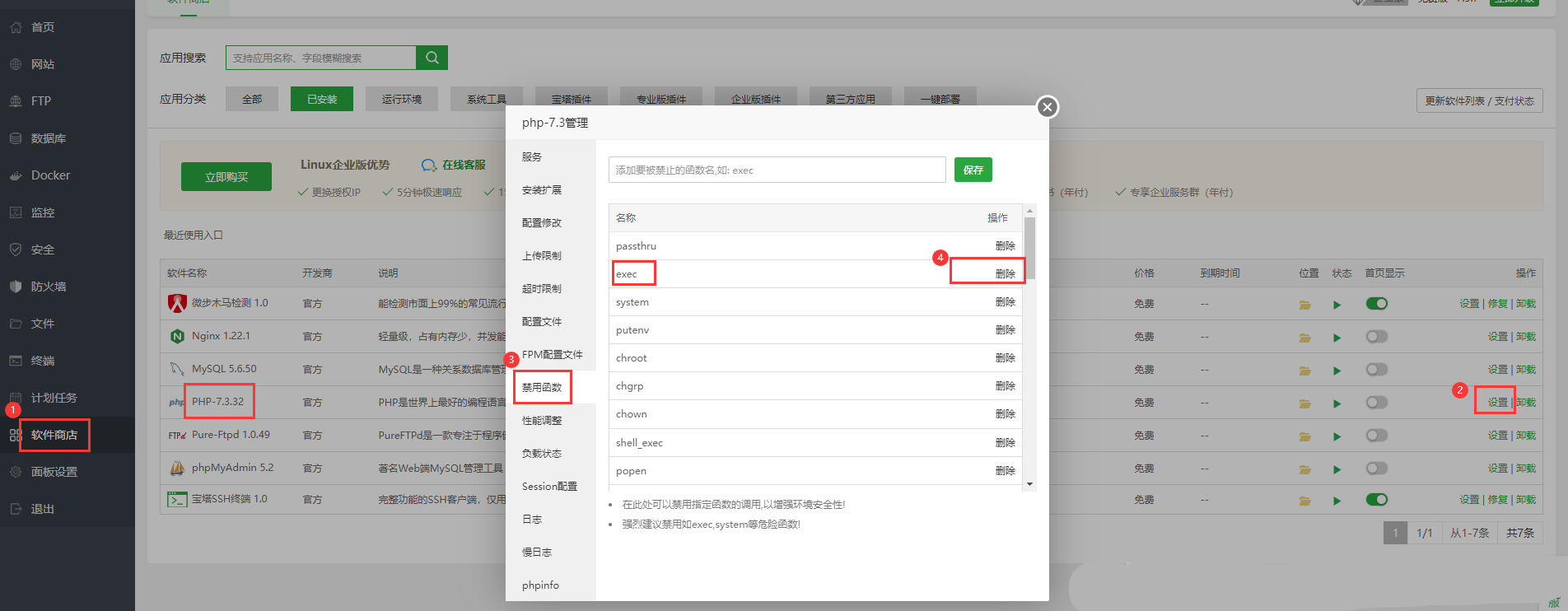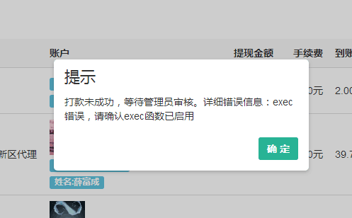 - 提示exec错误,请确认exec函数已启用 报错的解决方法