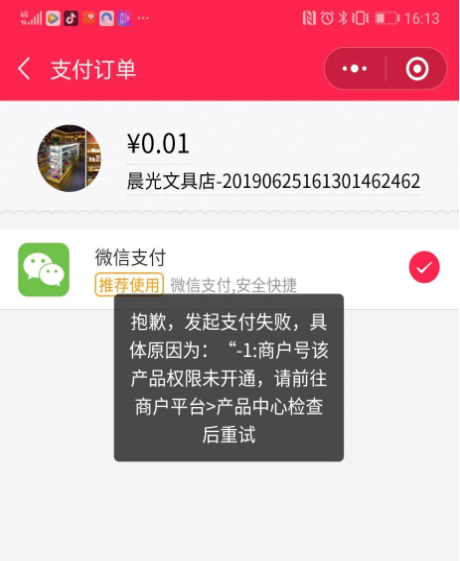 - 微信支付提示商户号该产品权限未开通的解决办法