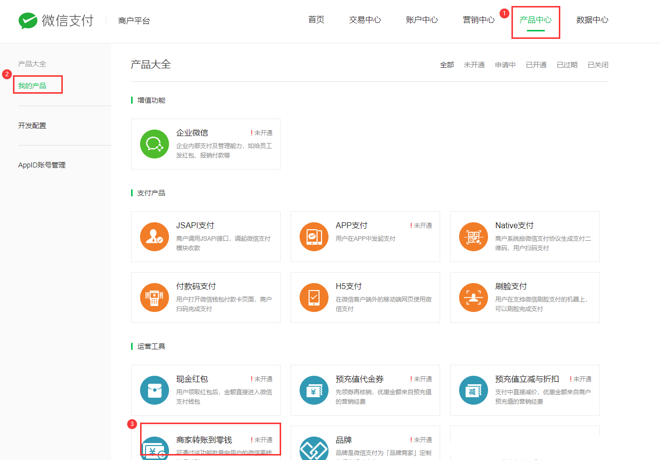 - 微信支付提示商户号该产品权限未开通的解决办法