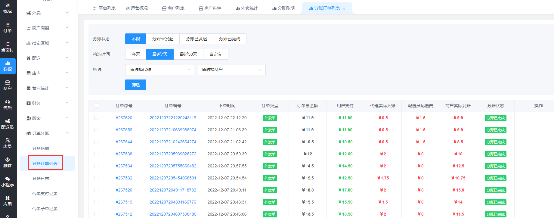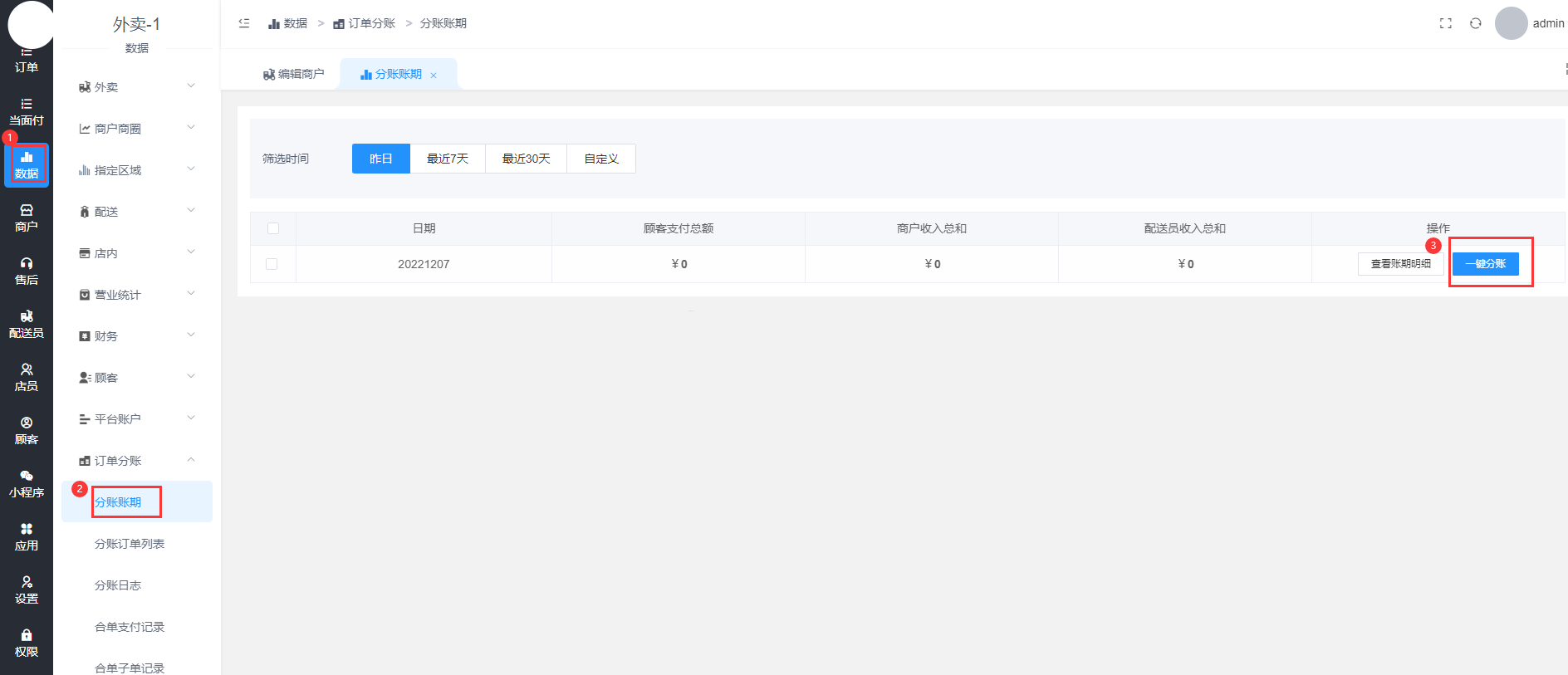 进入后台 数据-订单分账