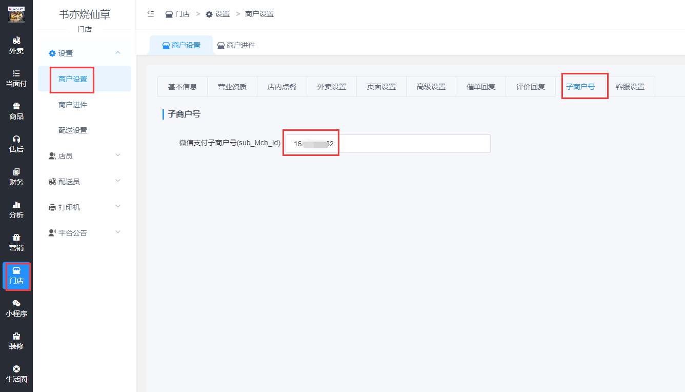 完成进件获得商户子商户号,填写在商户后台,即可。