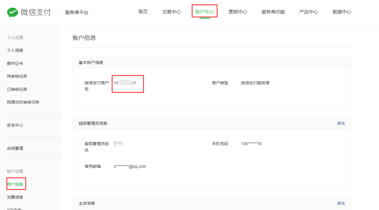 ## **1.2 获取商户号、服务商商户全称**