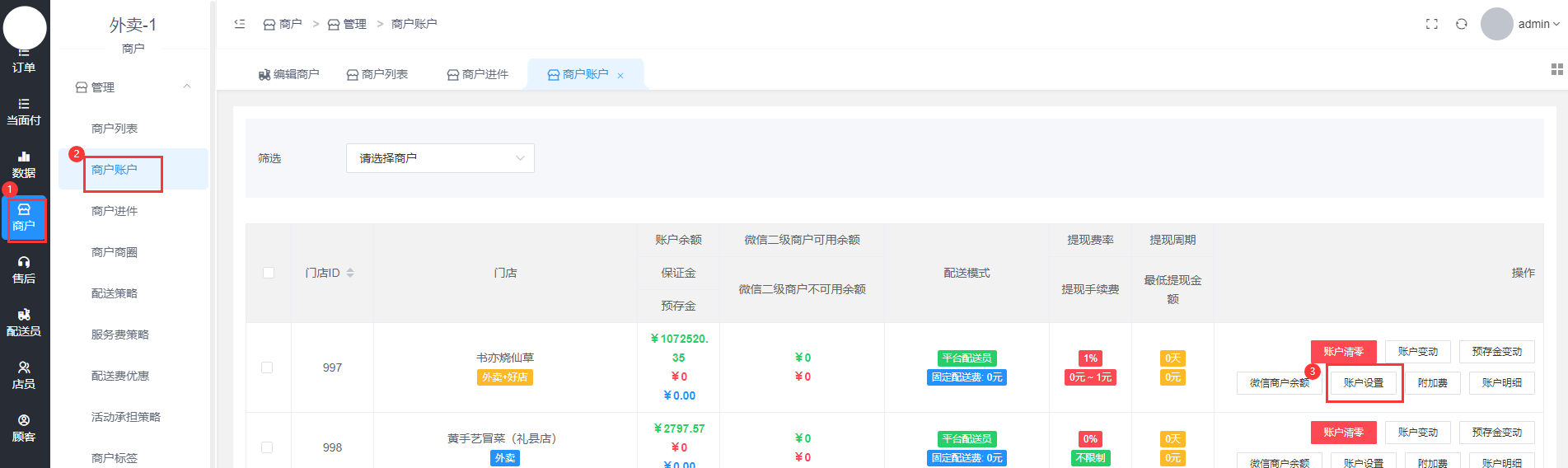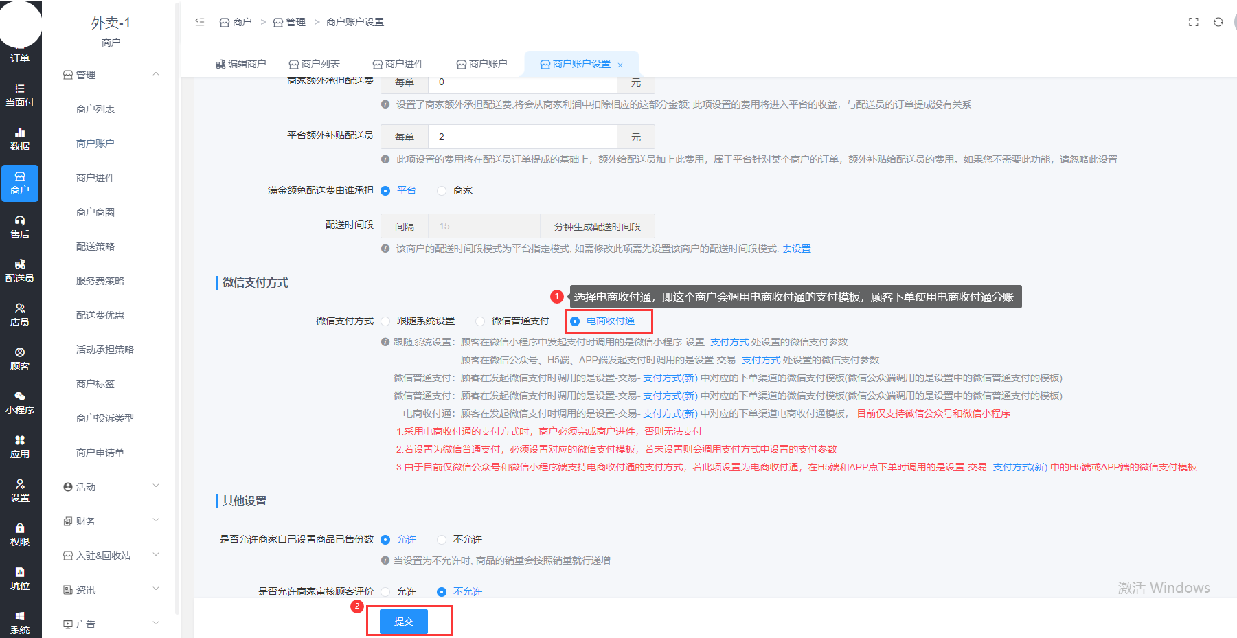 配送费进入配送账户商户号;