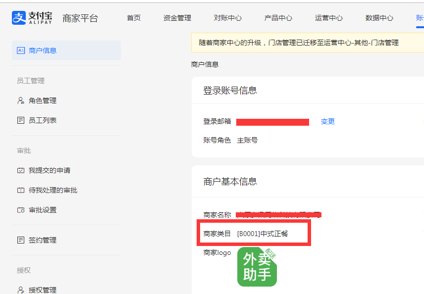 1.各位,请特别注意,支付宝的商户类目,需要设置为餐饮类目下的特定类目 (具体看下图),建议设置为餐饮-中式快餐