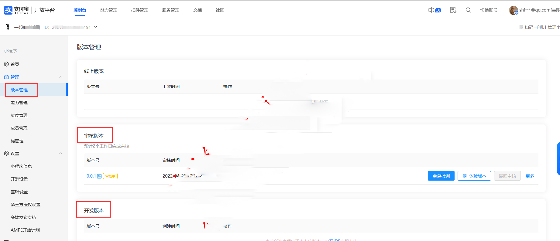 上传成功后,去支付宝小程序后台,版本管理-开发版本,点击提交审核