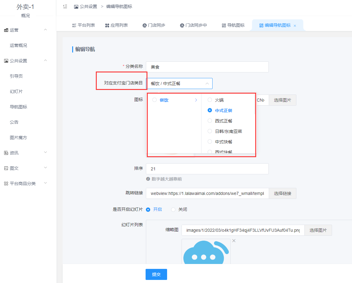 点击开始同步,提示“未设置对应的支付宝门店类目