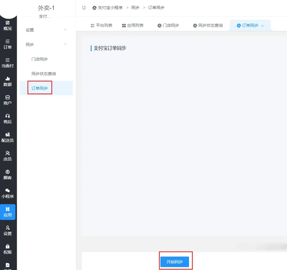在支付宝小程序里下单,订单完成后,点击订单同步--开始同步,即可.