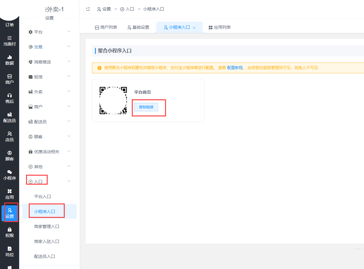 - 平台入口/商家管理入口/商家入驻入口/配送员入口