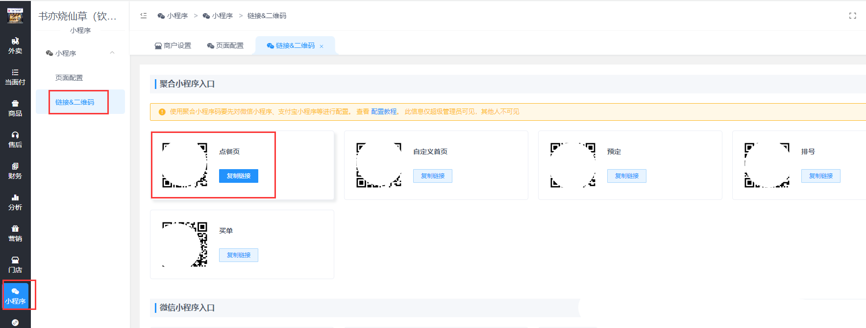 >[info]功能:顾客在微信里扫码直接进入微信小程序,支付宝里扫码直接进入支付宝小程序,浏览器里扫码直接进入H5链接。