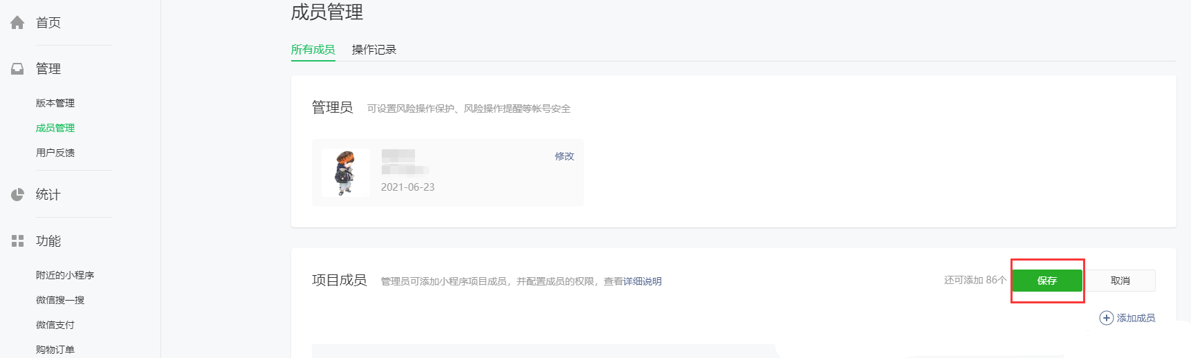 鼠标放在需要删除的开发者信息上,点击减号,然后点击保存,即可删除