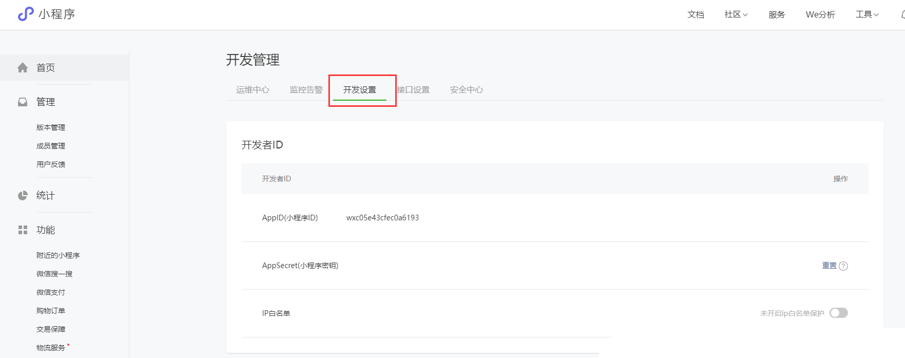 登录[微信小程序后台](https://mp.weixin.qq.com/)