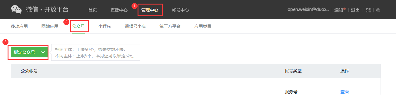 ## **1.1 绑定公众号**