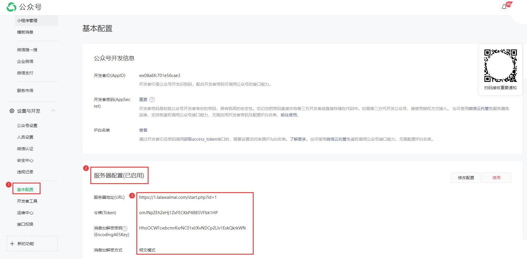 # **2.若没有推送成功,检查公众号后台服务器配置**