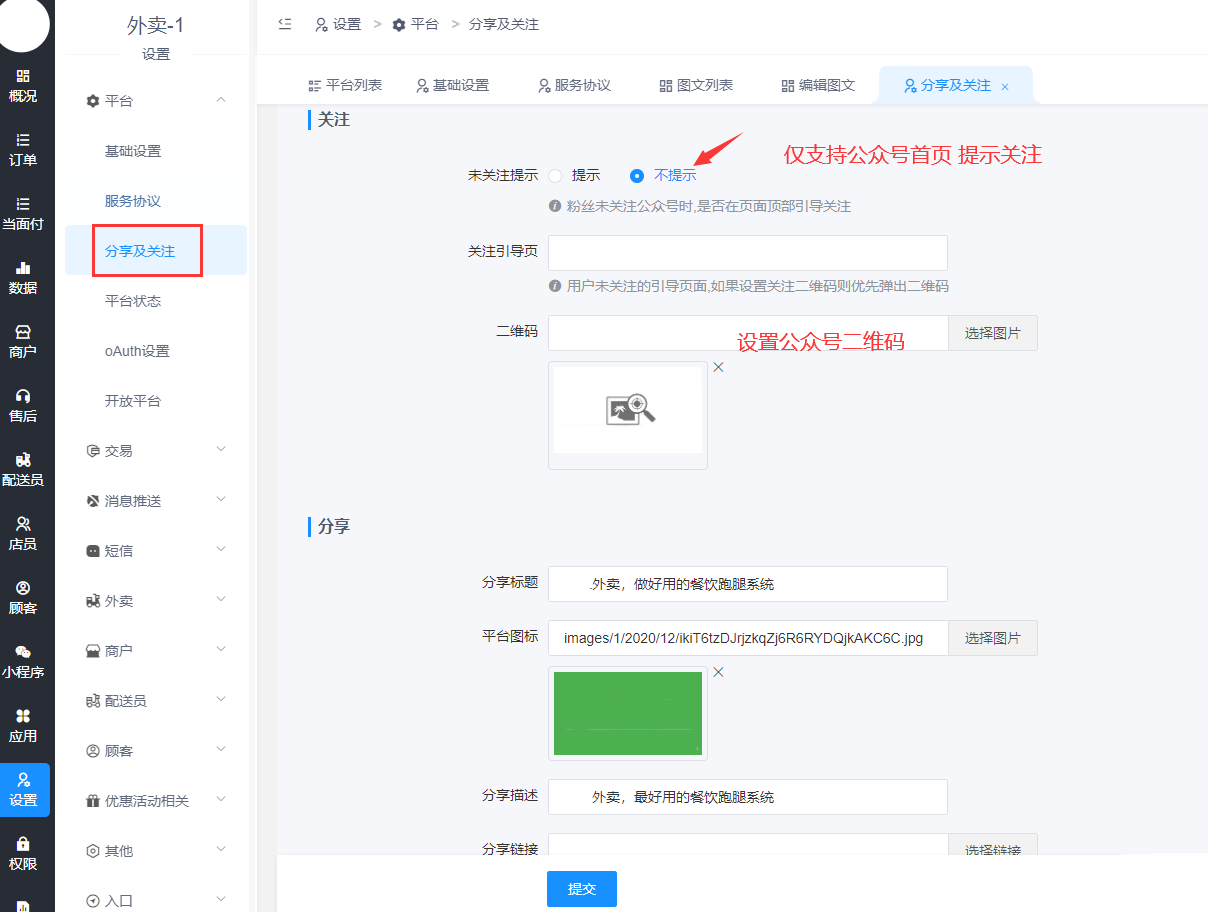 - 平台基础设置