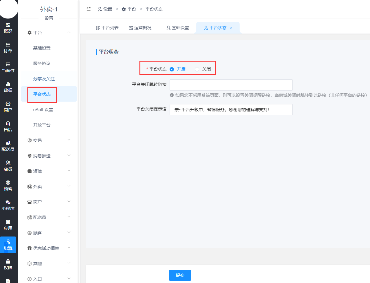 临时暂停运营的话,可以关闭平台,设置提示语.