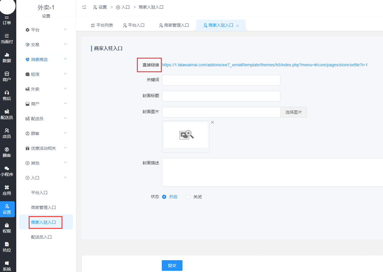 商家管理入口