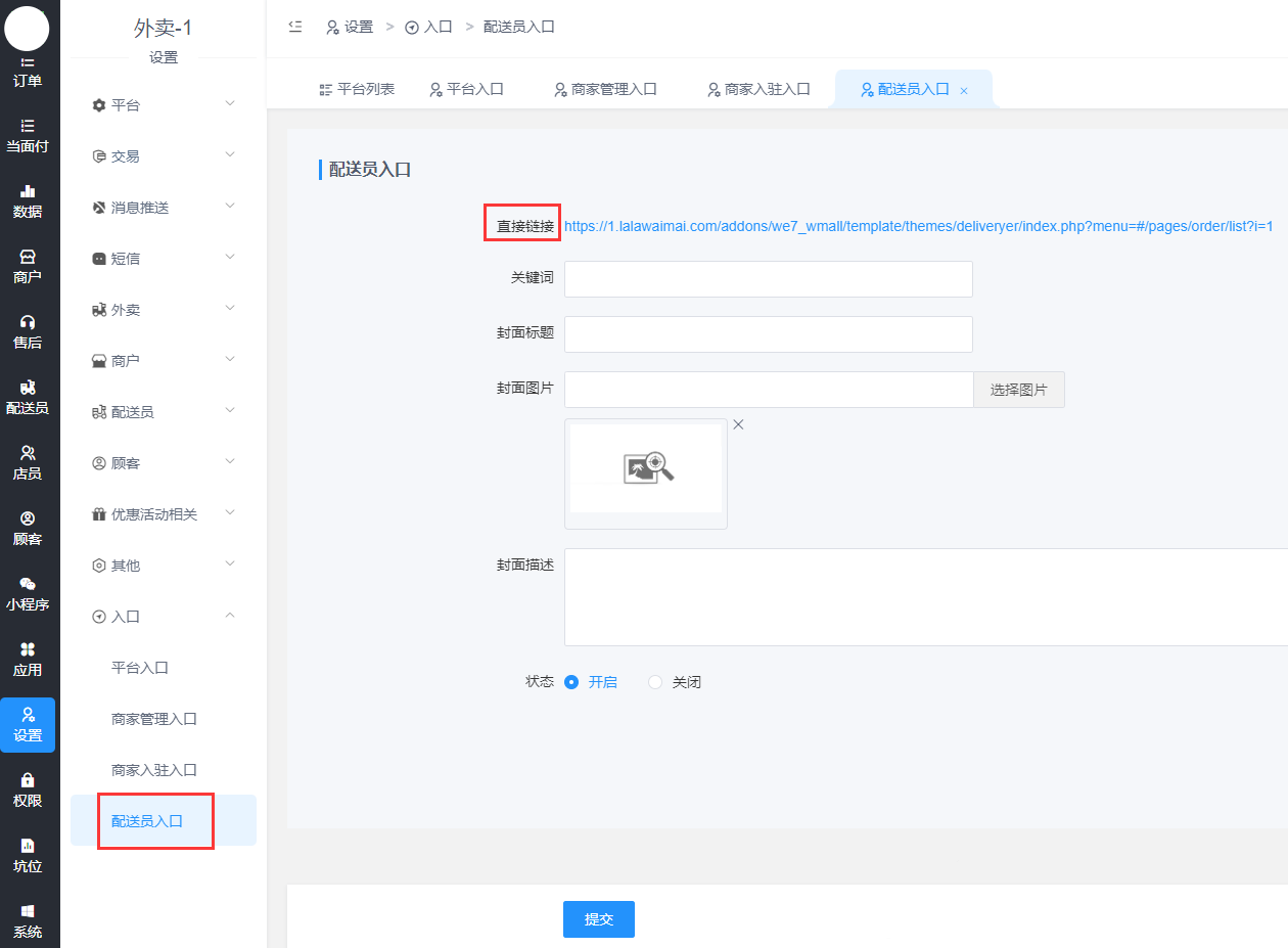 - 平台入口/商家管理入口/商家入驻入口/配送员入口