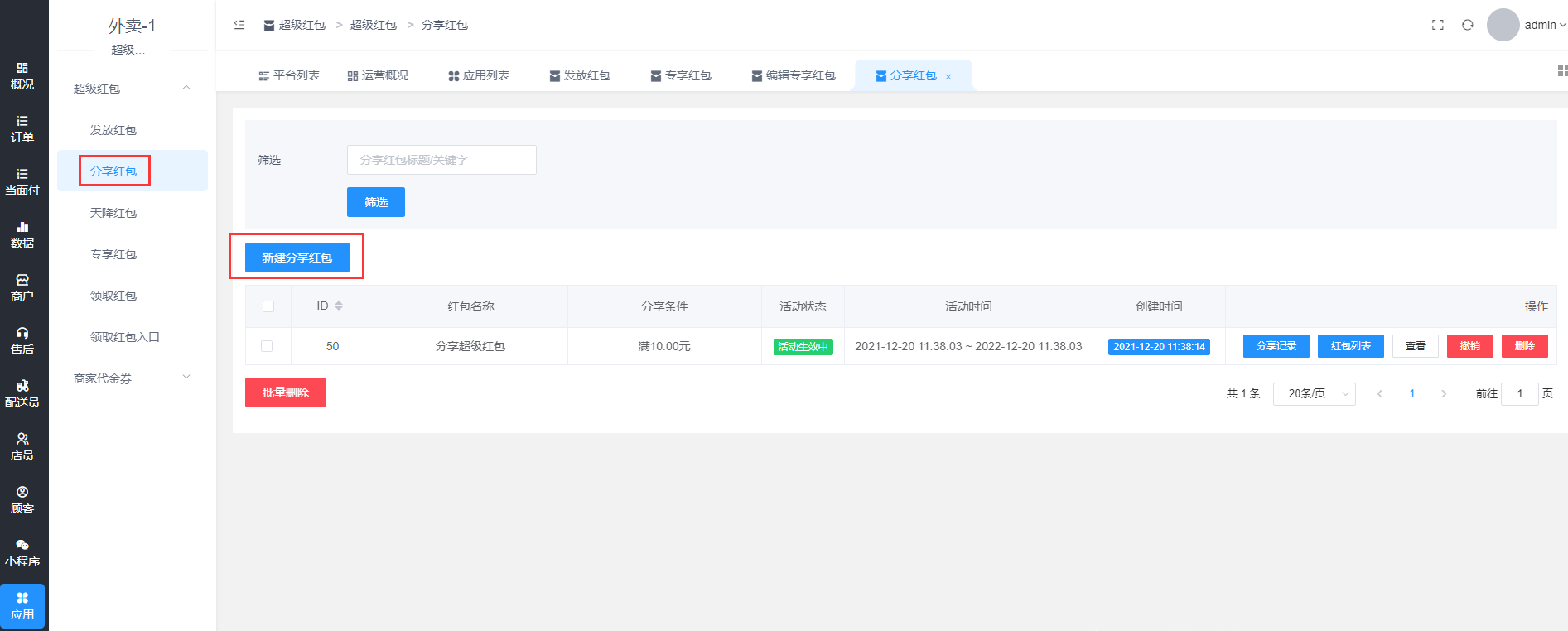 # **1.新建分享红包**