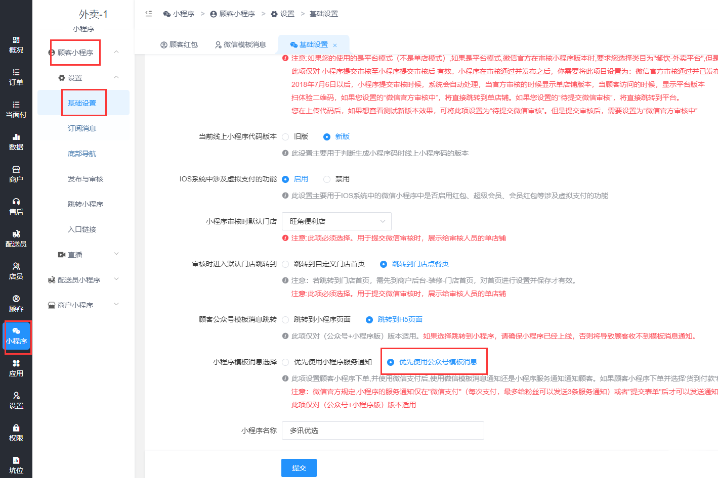 有小程序版的客户注意,小程序-顾客小程序-基础设置,选择优先使用公众号模板消息.