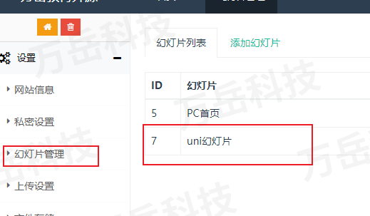 **轮播图** 可以在后台设置->幻灯片管理中配置