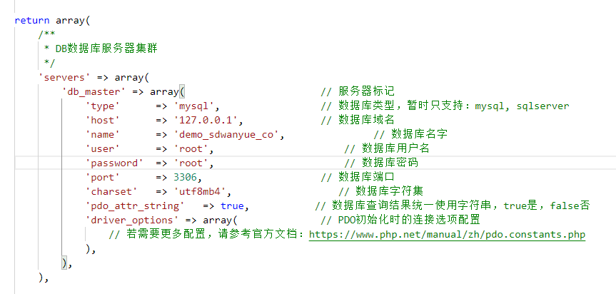 2.文件路径:项目根目录/phalapi/config/dbs.php