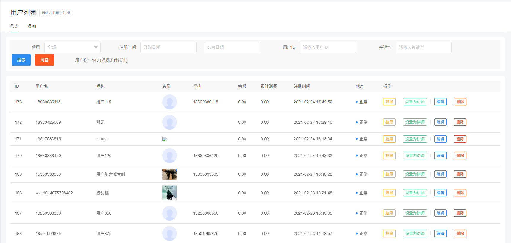 禁用用户后用户状态显示为已拉黑,需要再次启用后用户状态为正常