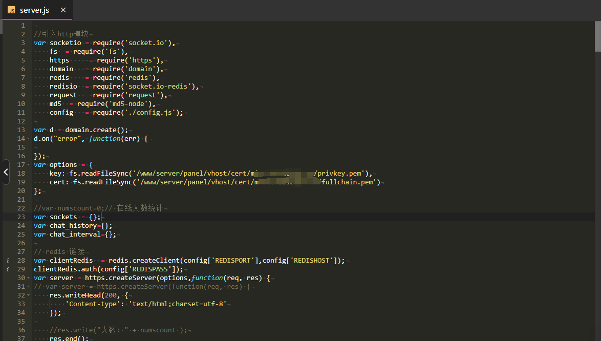 ④将获取到的证书路径设置到server.js文件中,参考下图