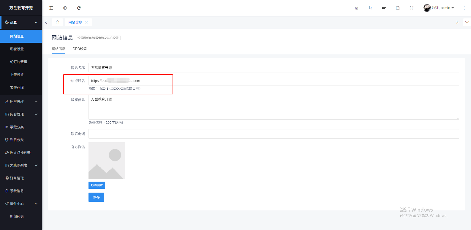 ### 将**后台-网站信息-域名信息**,修改为搭建的新域名地址,保存后重新运行uniapp即可