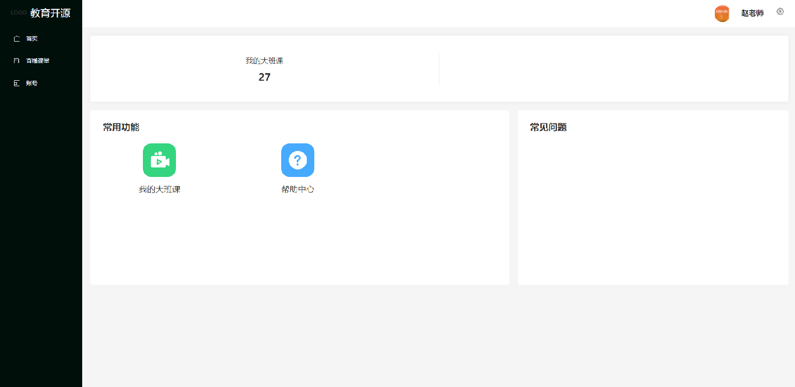 首页分为三个部分:上部、中部、左侧菜单栏;