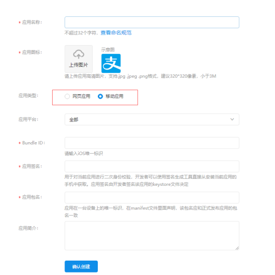 4、应用类型选择 移动应用