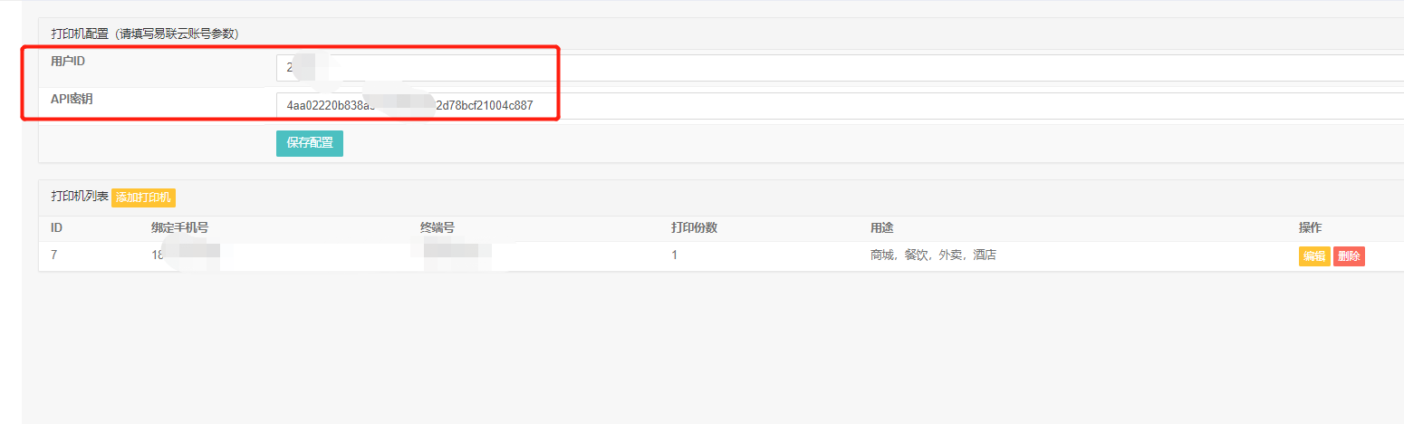 ### 7、终端秘钥,将终端四个参数获取后,也要填写至后台便可正常打印