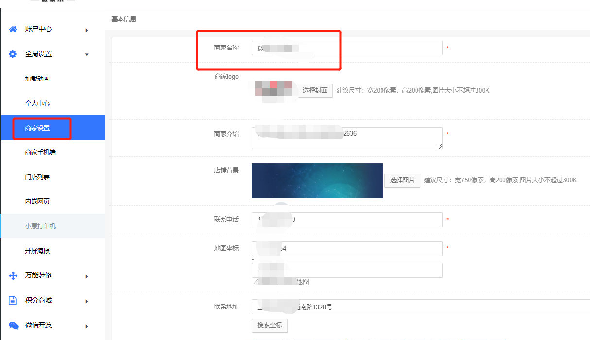 ### 8、全局设置——商家设置,商家名称必填,否则会导致无法打印