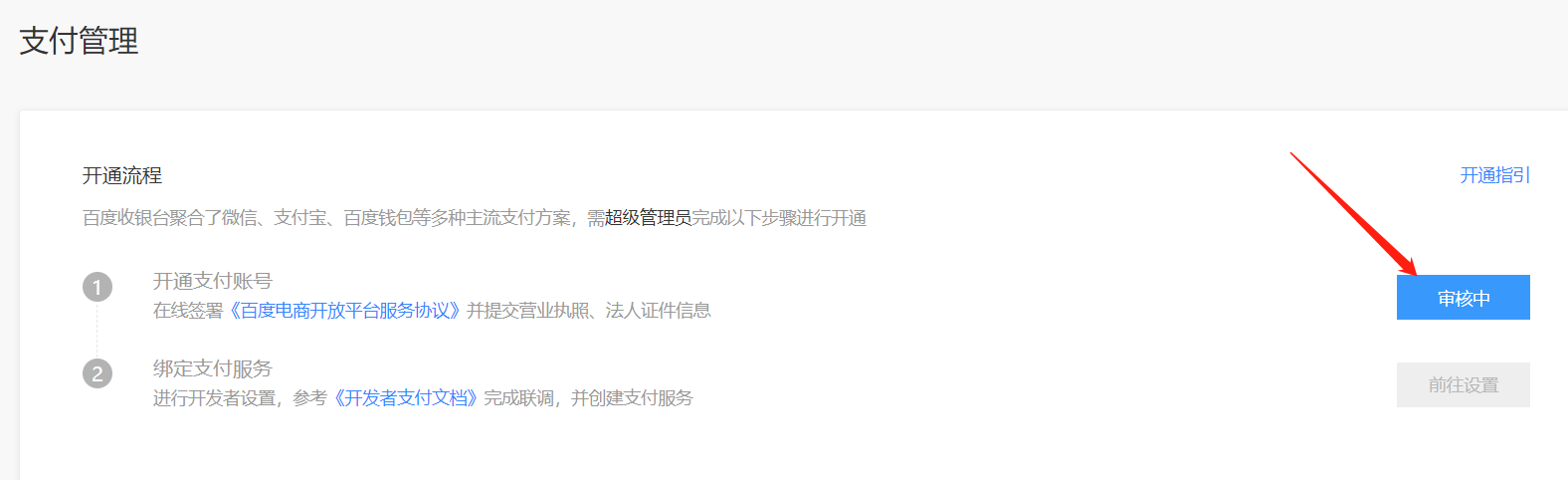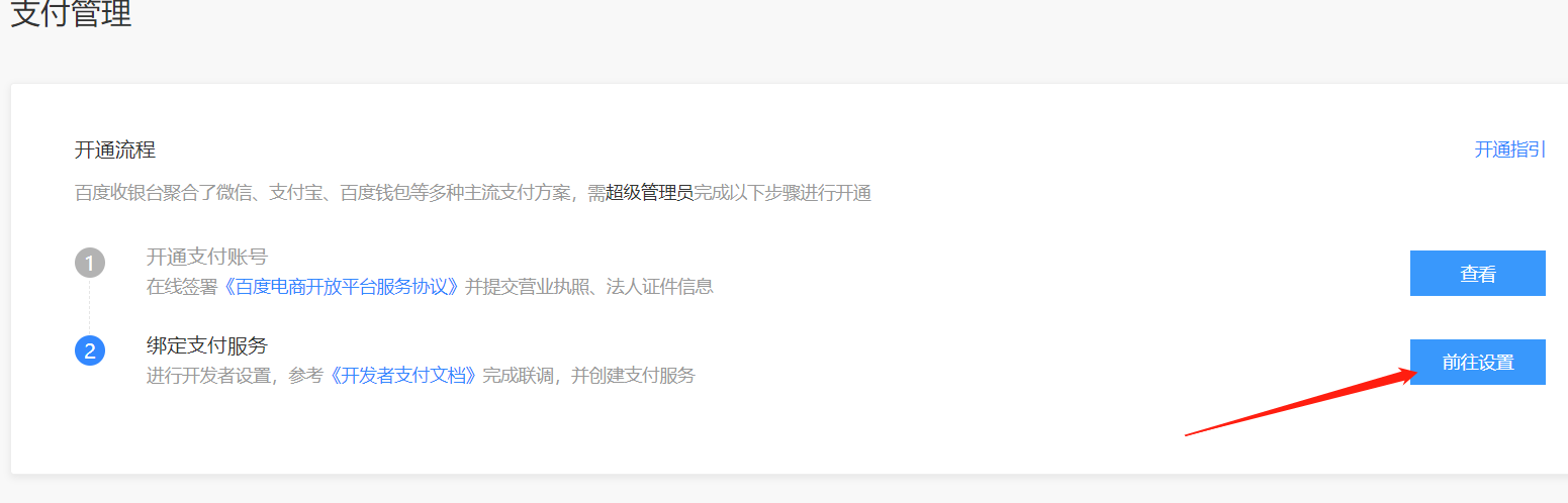 百度小程序后台,支付管理,前往提交