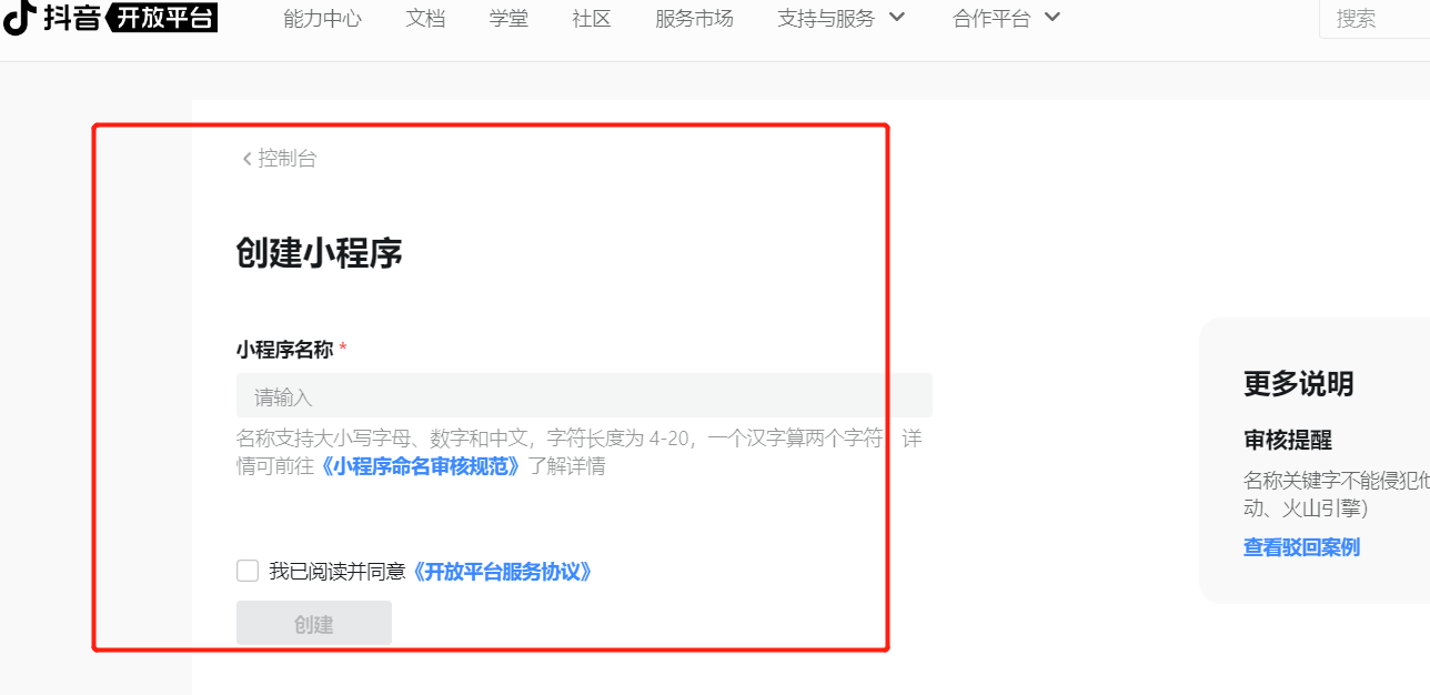 创建小程序https://developer.open-douyin.com/console/apply/microapp