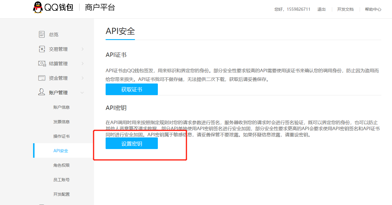 再QQ钱包商户平台设置api密钥,填入制作后台