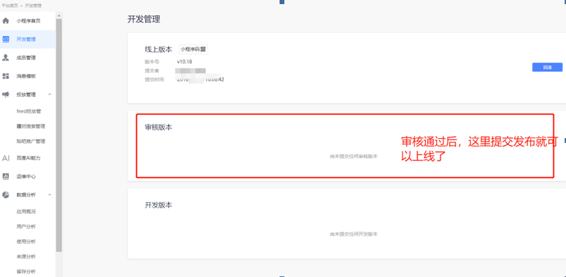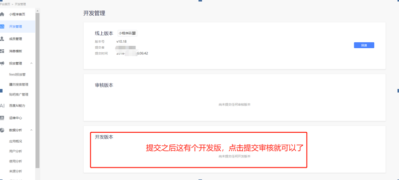 开发管理这里,提交审核