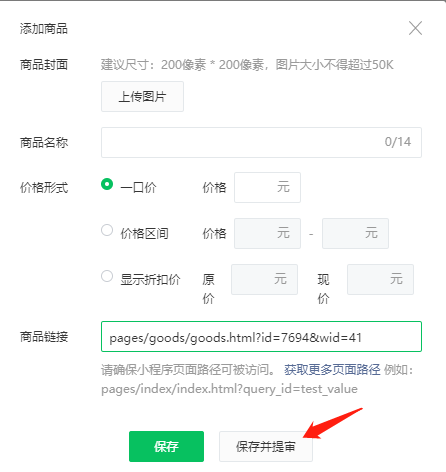 保存并提交审核